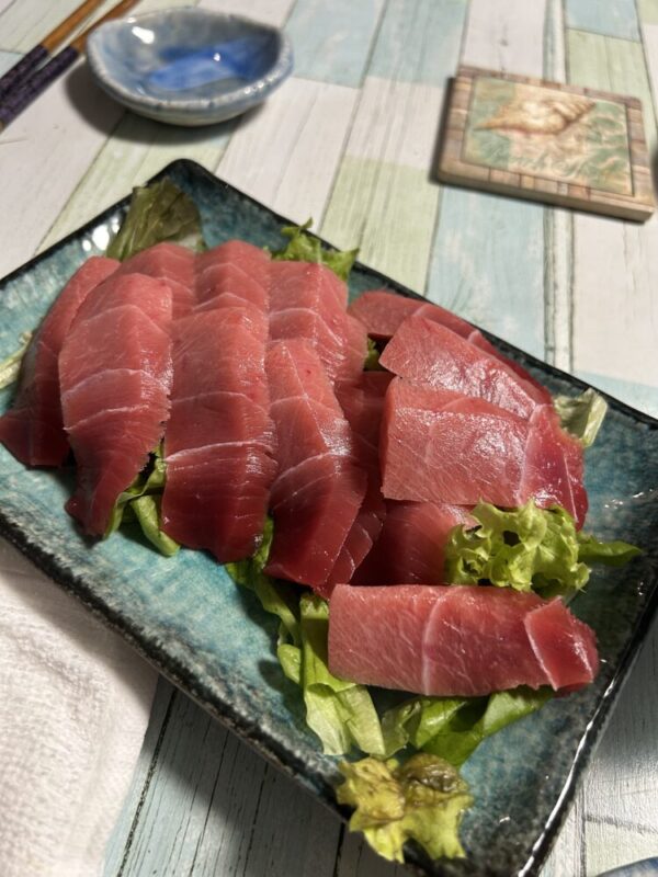 作業終了後には近くに魚屋でインドマグロ中トロの柵とシャケの切身を買ってくれました🐟